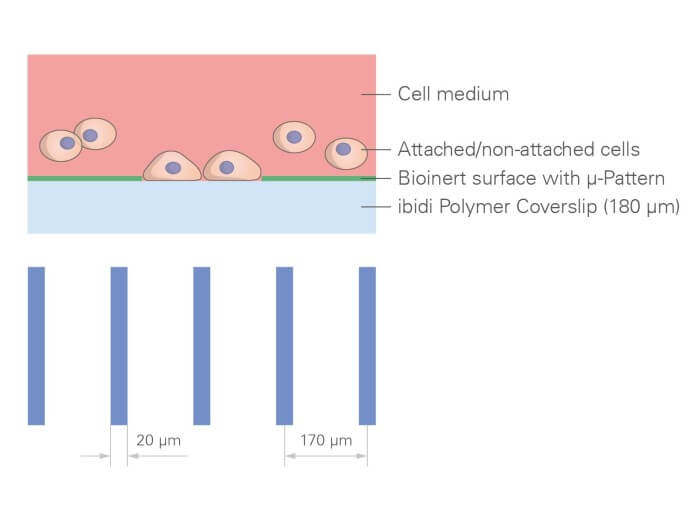 µ-Pattern、Bioinert生物惰性表面及 ibidi Polymer 聚合物蓋玻片均經過優化,特別適用于高分辨率成像和顯微鏡觀察。